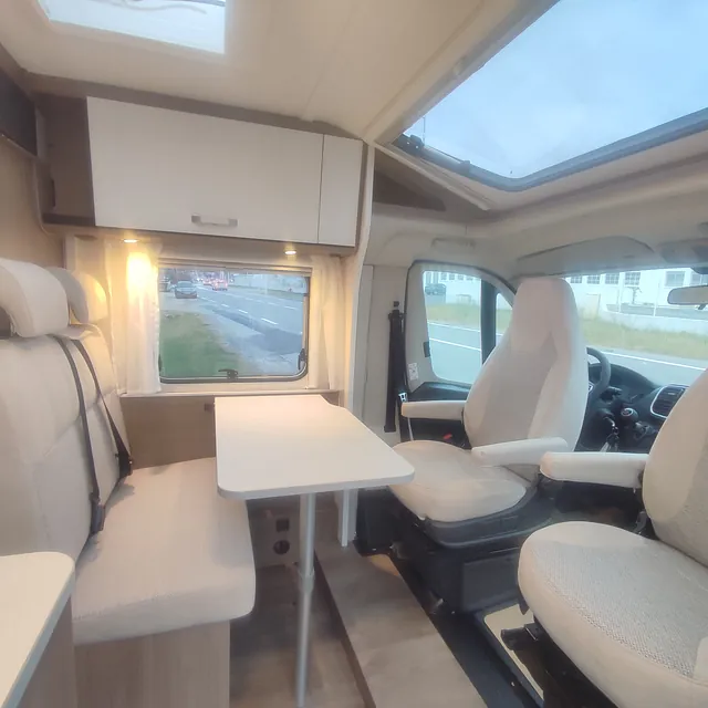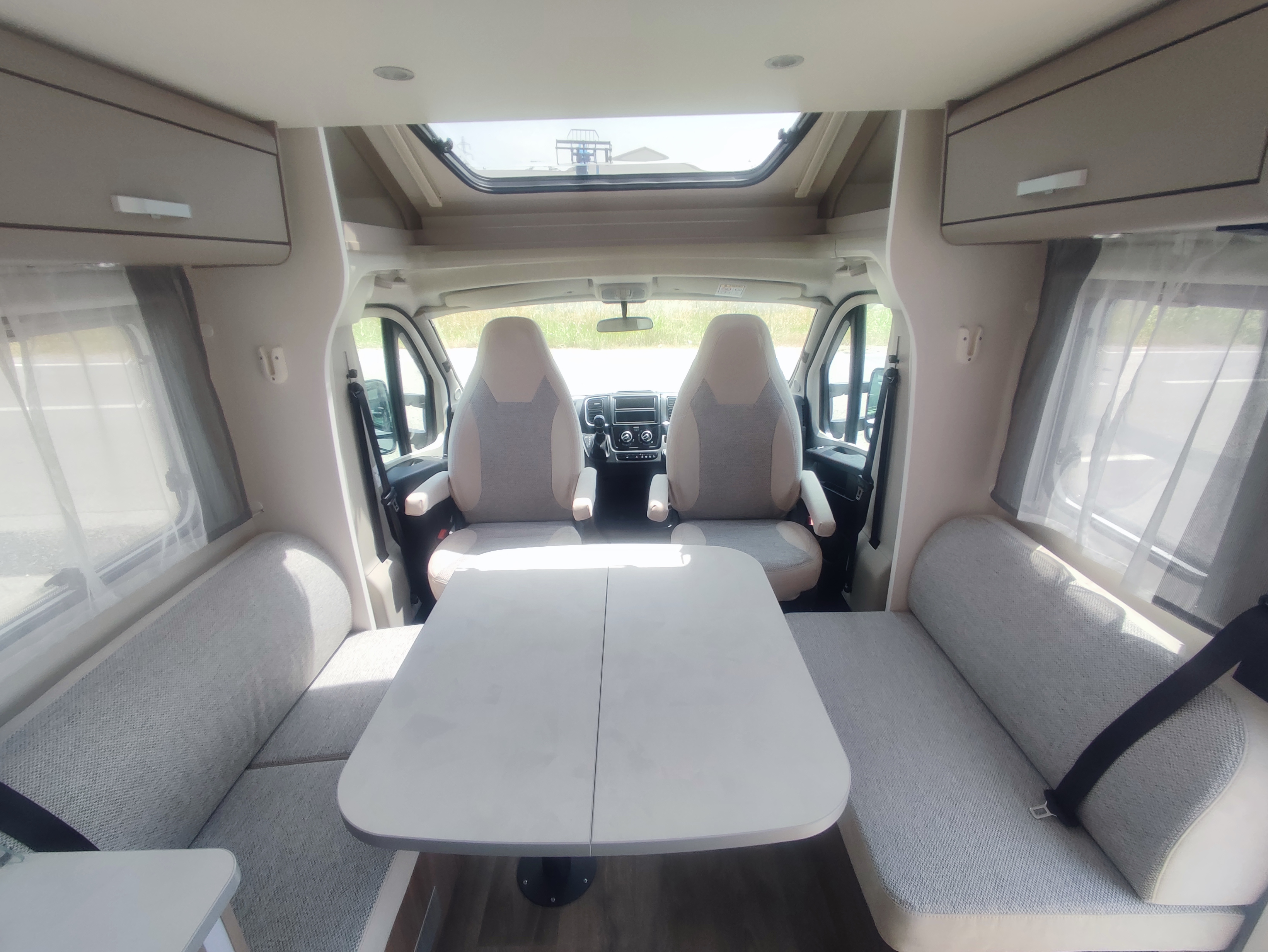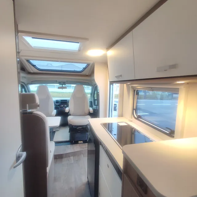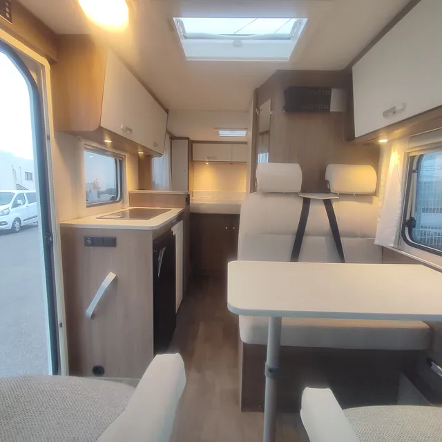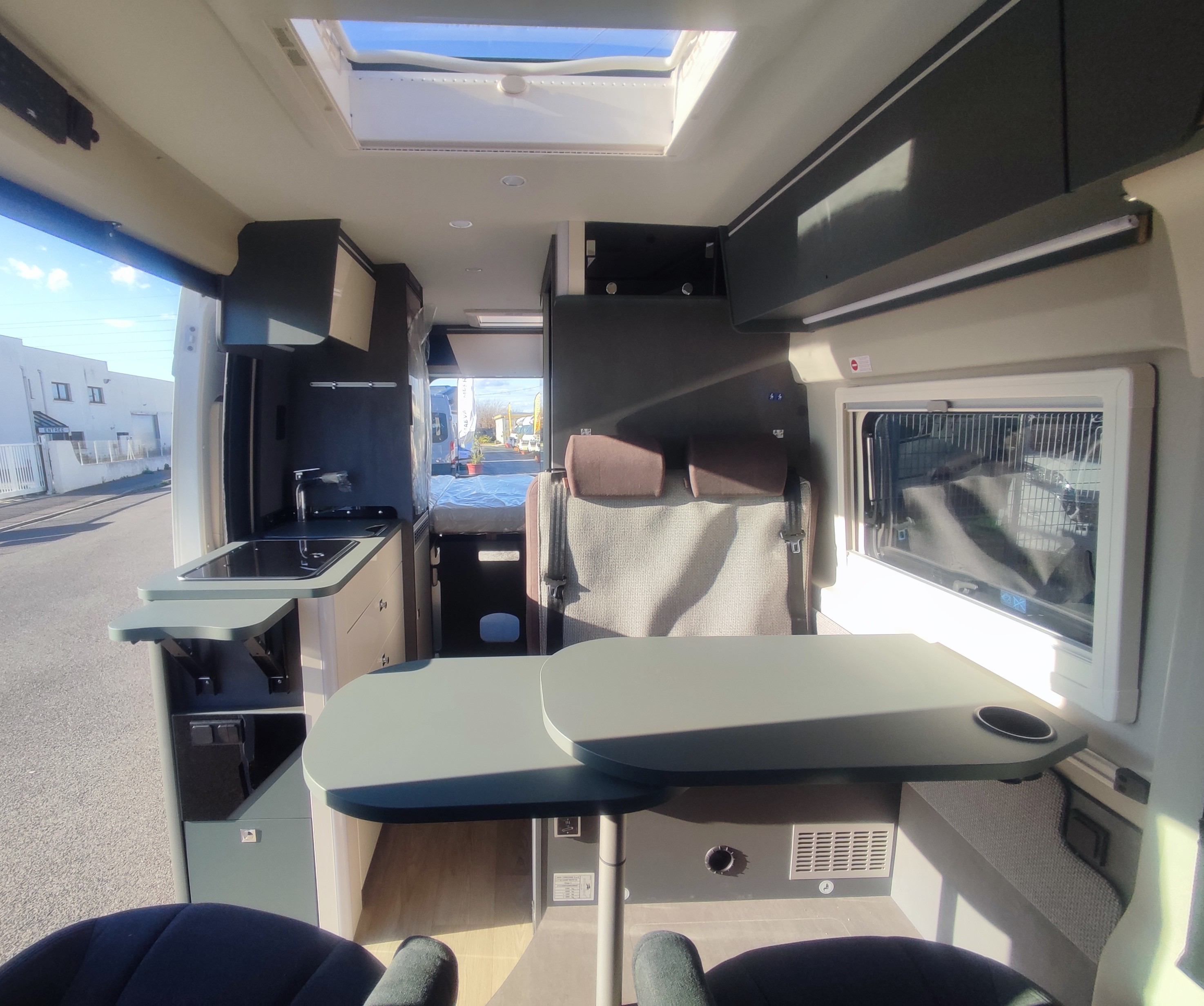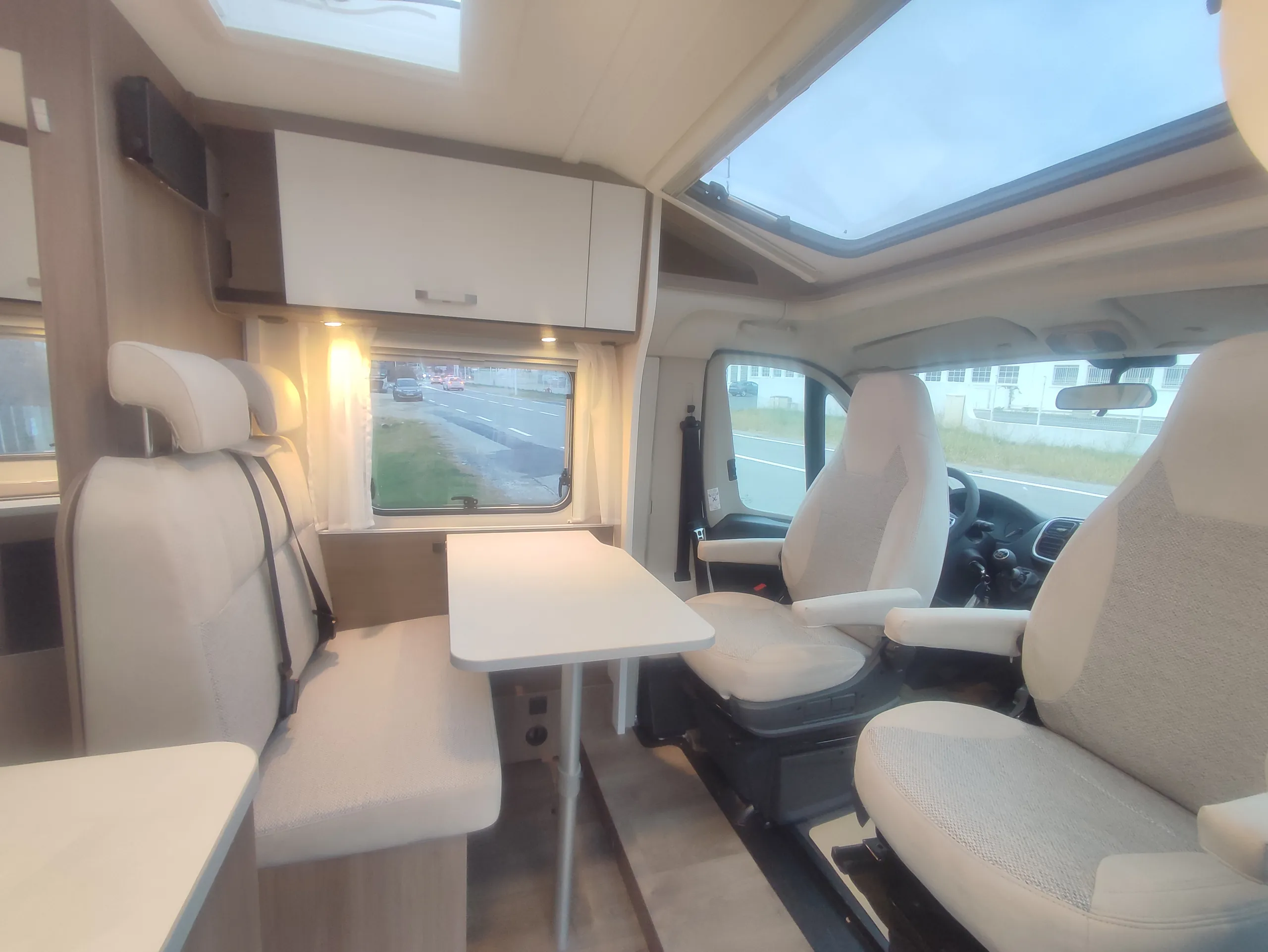 Option incluses : Store exterieure, Pré équipement Panneaux solaires, Occultants cabinePorte entrée avec Moustiquaire, Boite automatique, Couleur extérieure gris campolovo, Caillebotie en bois, Baie affleurante,Pack optique 1 et 2 + Pack confort, Fermeture centralisée des portes, Marche pied éléctrique, Multiples prises 12V,USB-USB-C et 220V, Lanterneau panoramique, Design élégant, Tissus Ice,