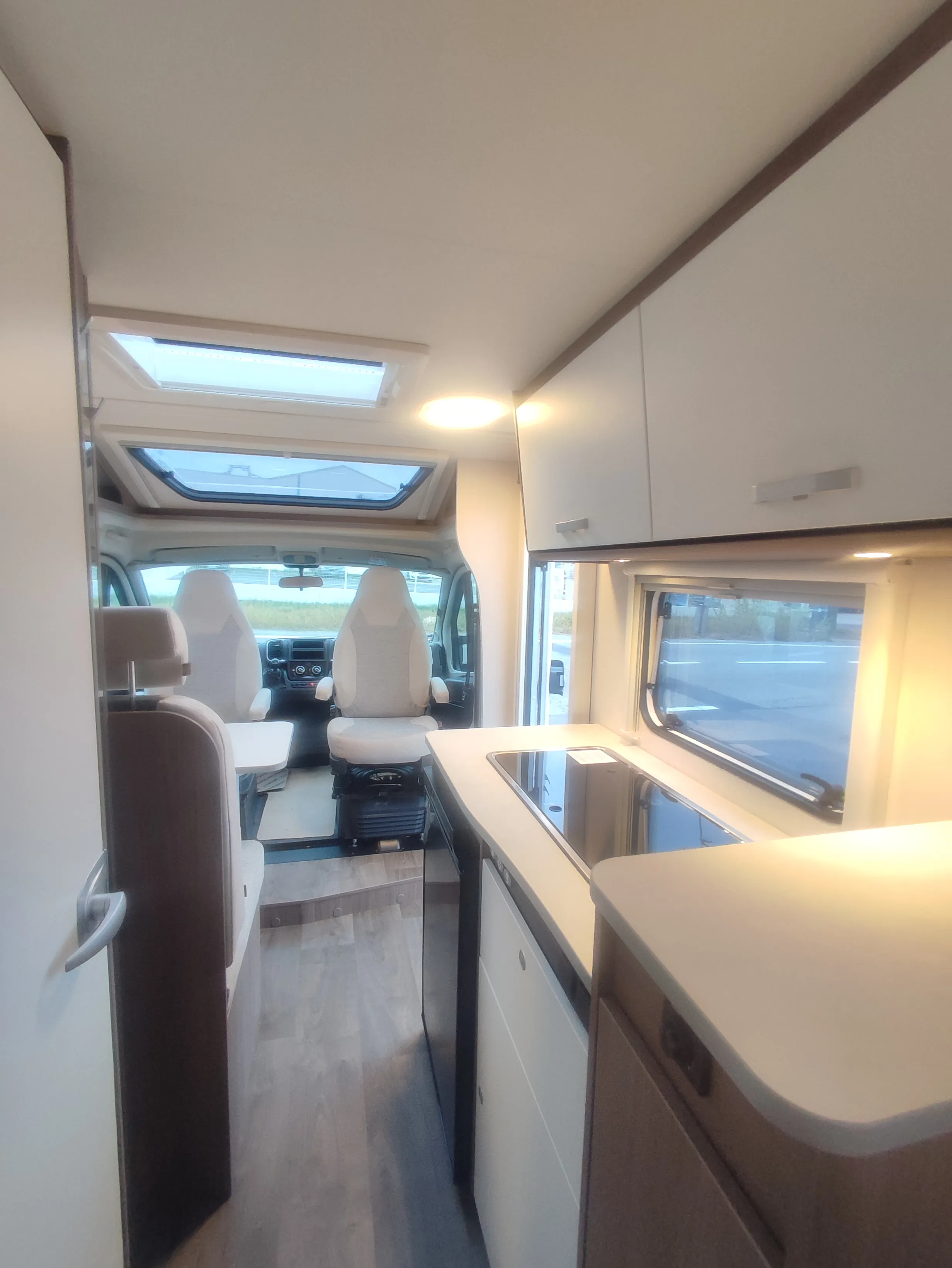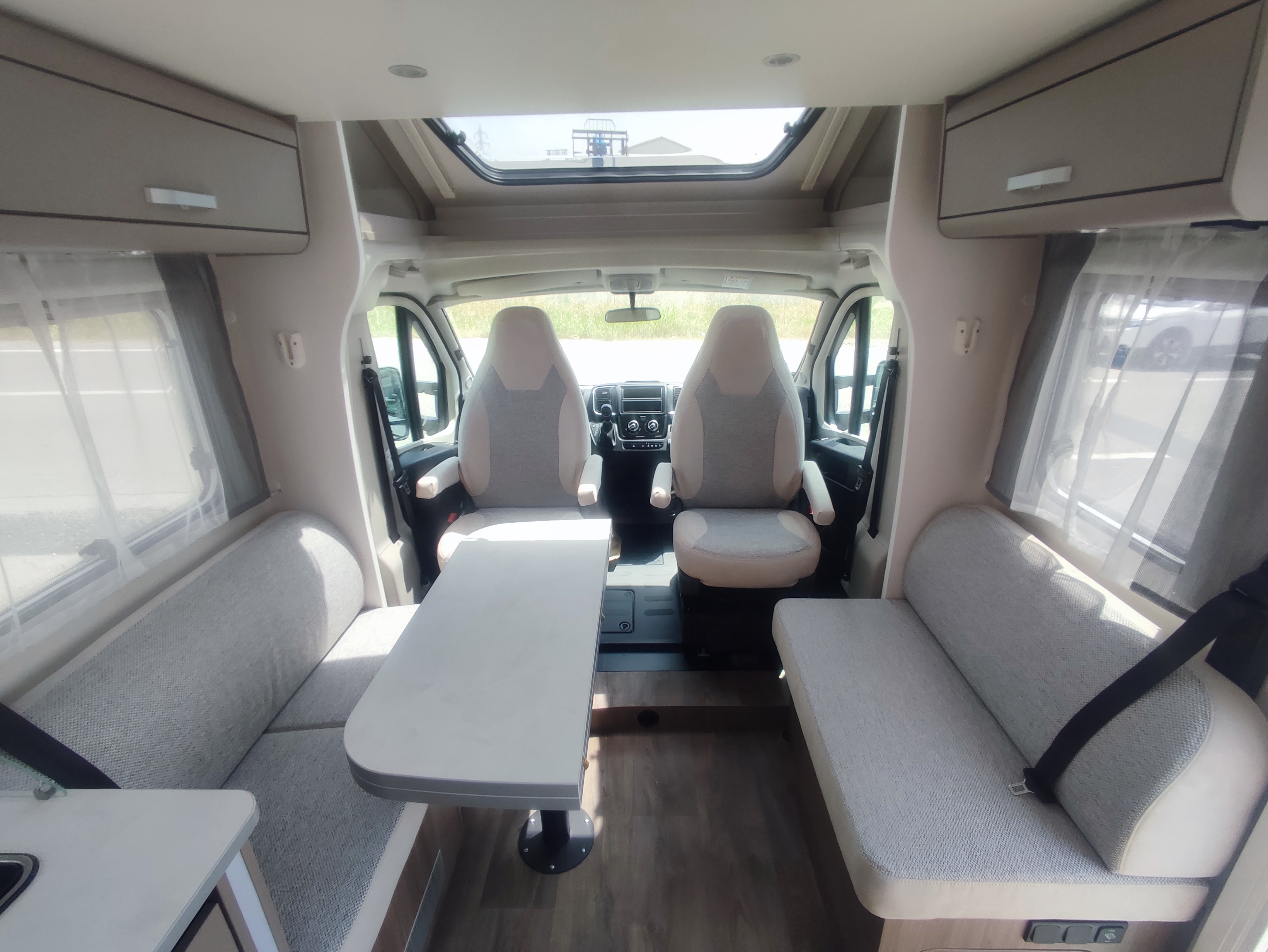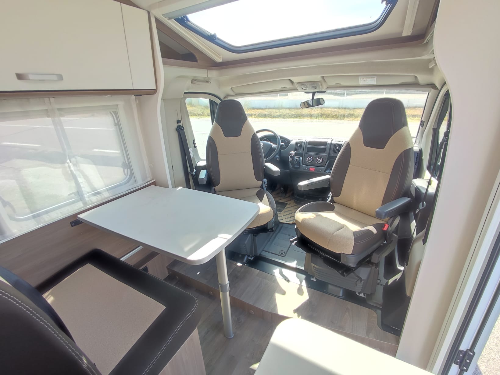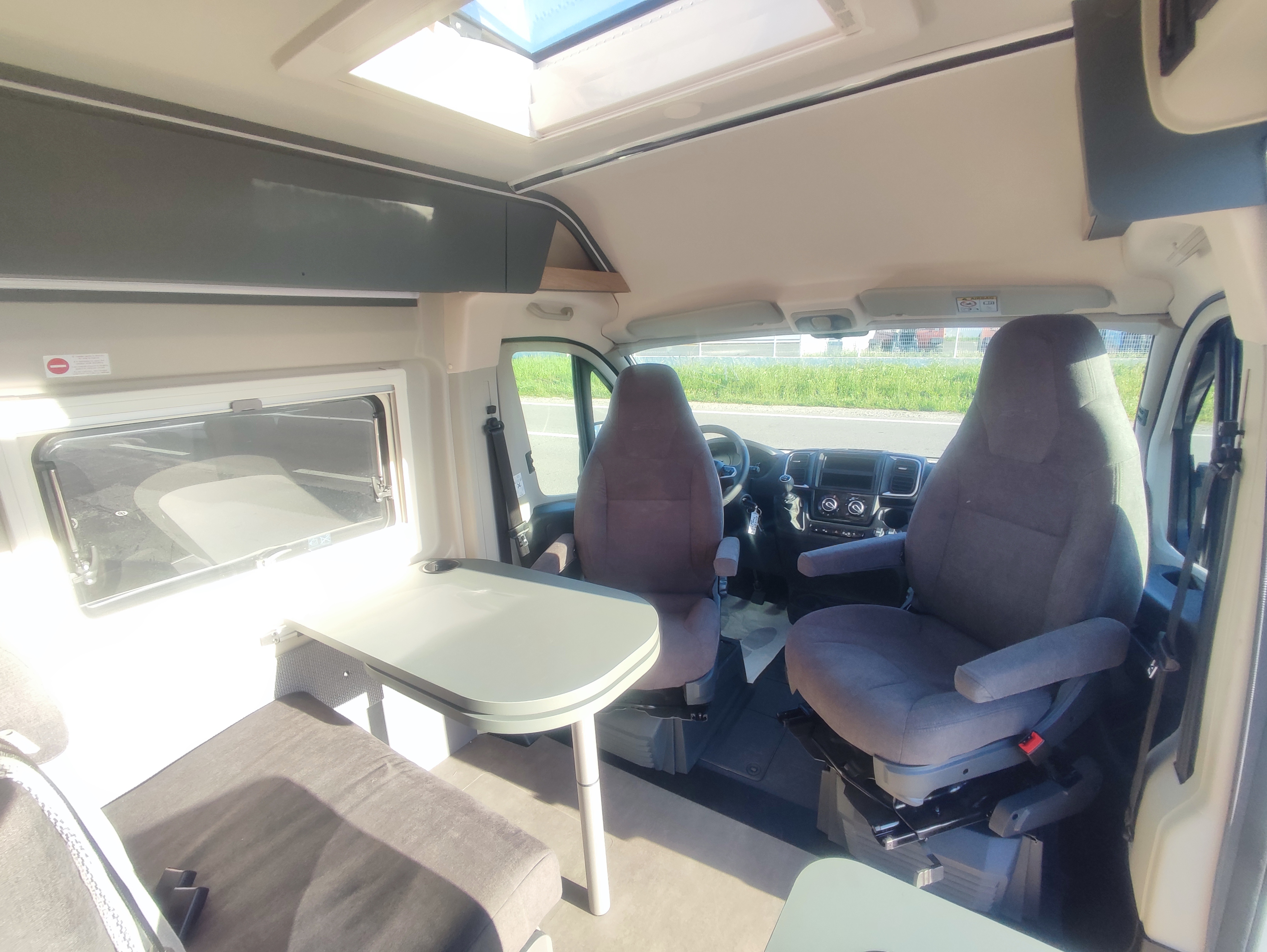Option incluses : Store exterieure, Pré équipement Panneaux solaires, Occultants cabinePorte entrée avec Moustiquaire, Boite automatique, Couleur extérieure gris campolovo, Caillebotie en bois, Baie affleurante,Pack optique 1 et 2 + Pack confort, Fermeture centralisée des portes, Marche pied éléctrique, Multiples prises 12V,USB-USB-C et 220V, Lanterneau panoramique, Design élégant, Tissus Ice,