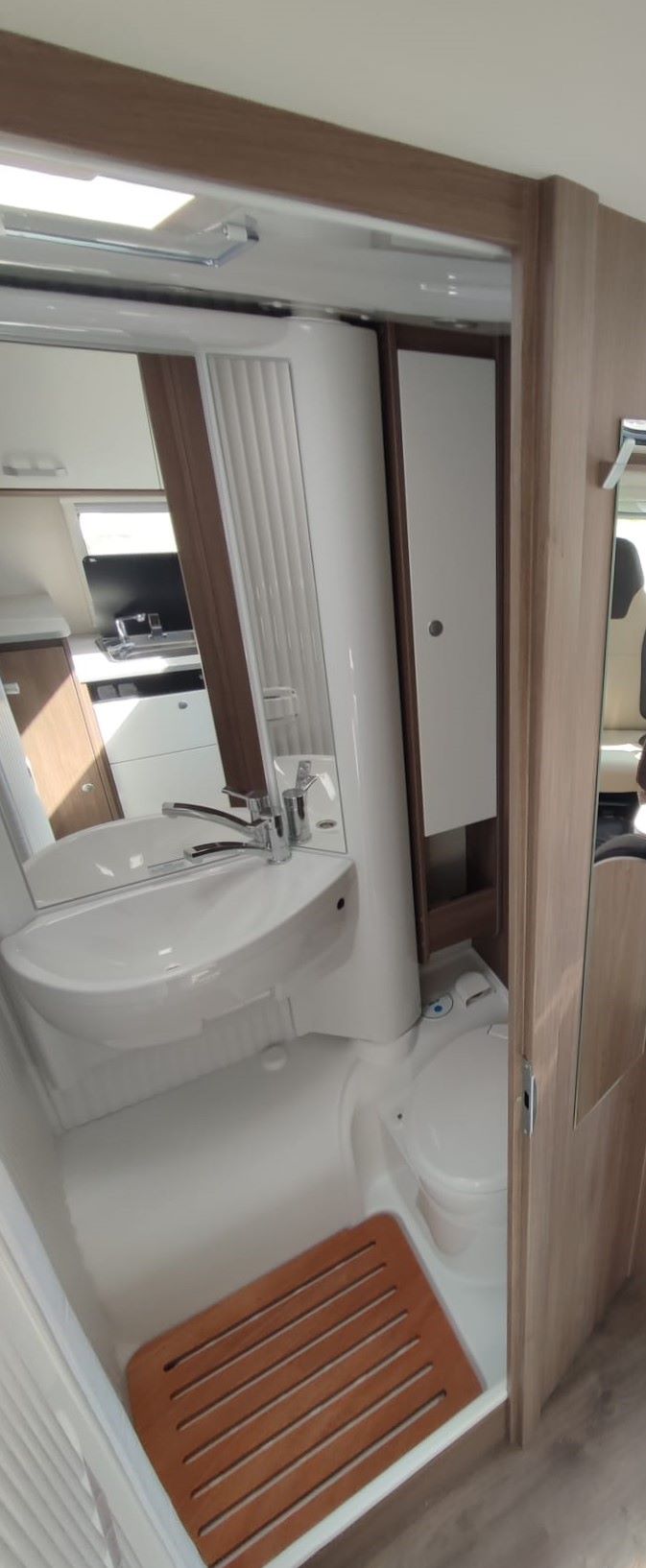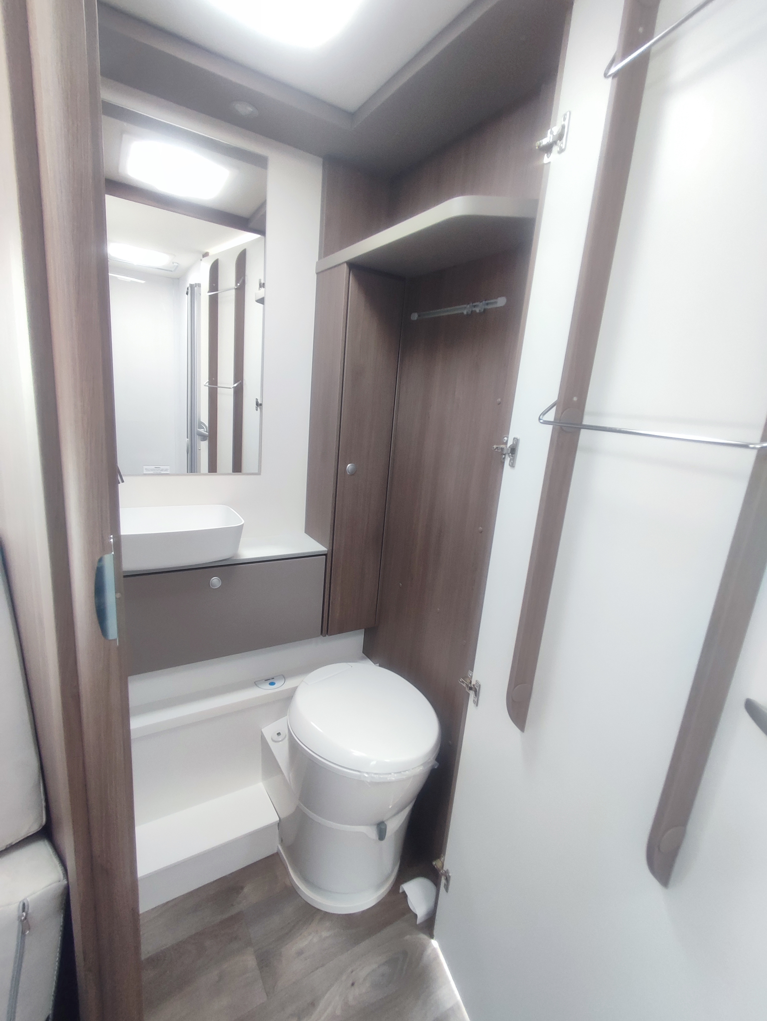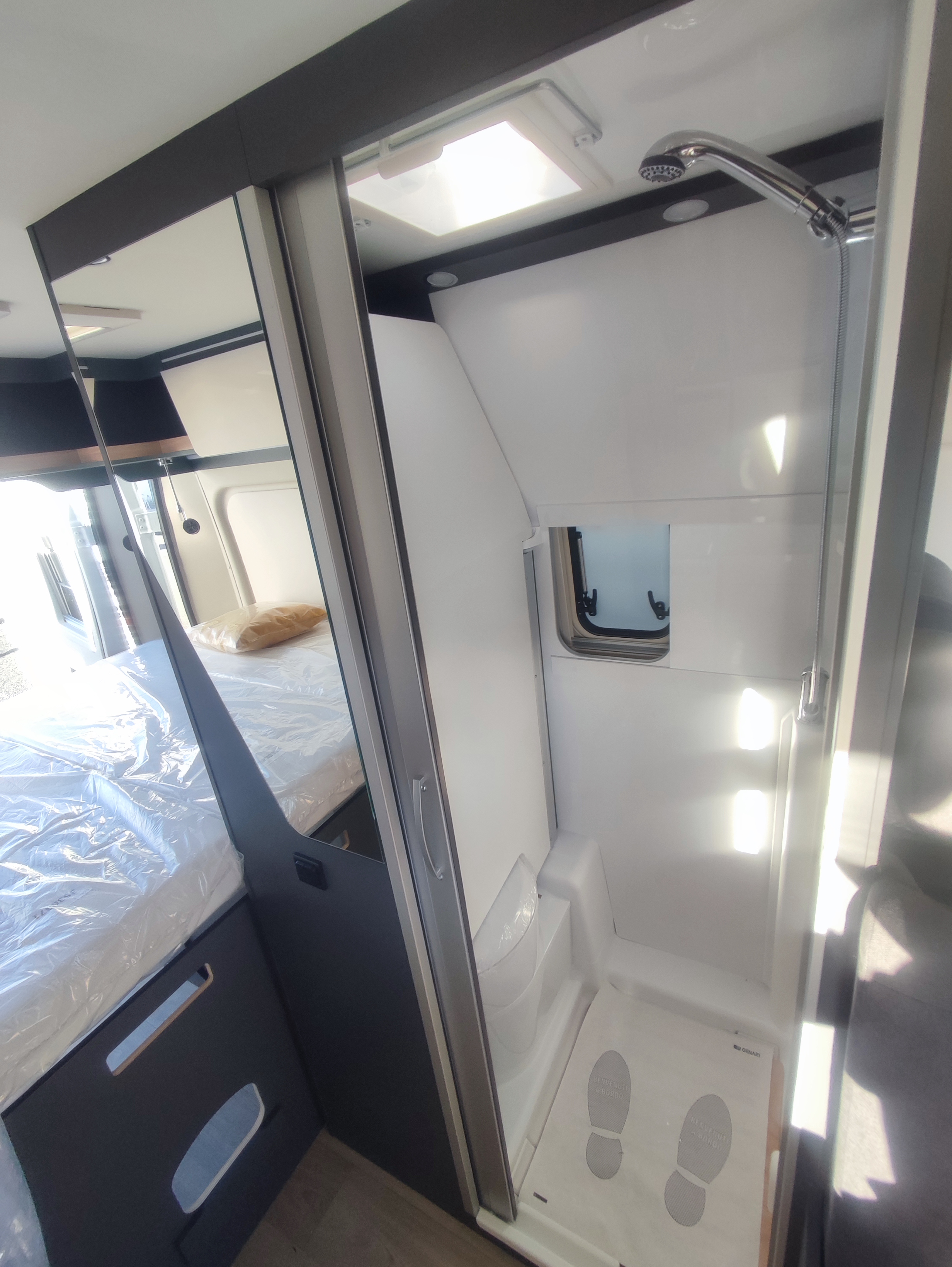 Option usine: Salle d'eau avec parroie pivotante, Pack confort, Chauffage combi 6 diesel Pack pare-Choc avant peint, Store plisse cabine, baies a cadre affleurant, reservoir 100L, Feu de jour, Jante alu 16"Porte entrée avec Moustiquaire, Fermeture centralisée des portes, Multiples prises 12V, USB et 220v,