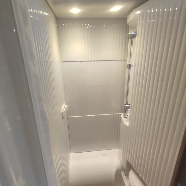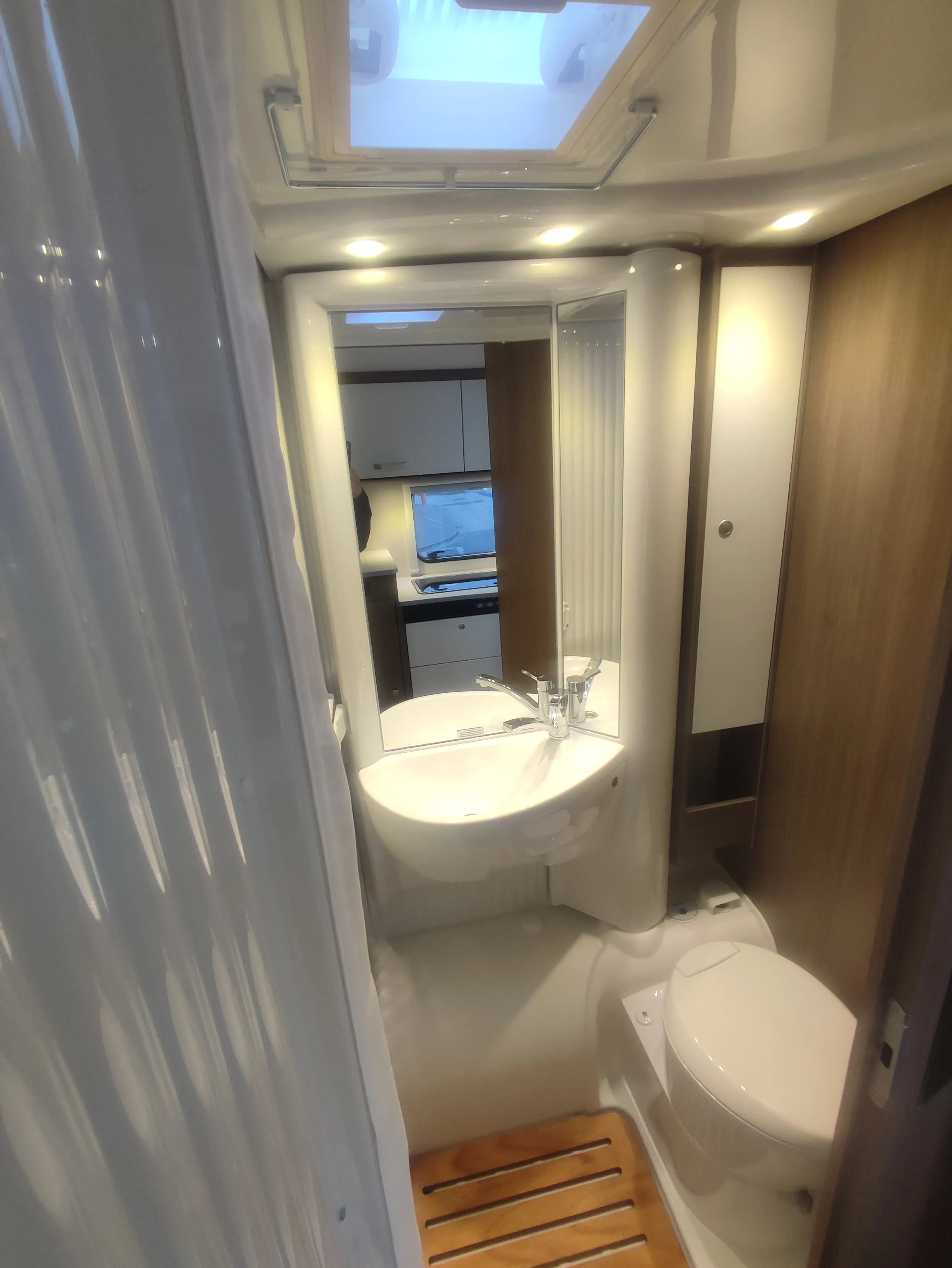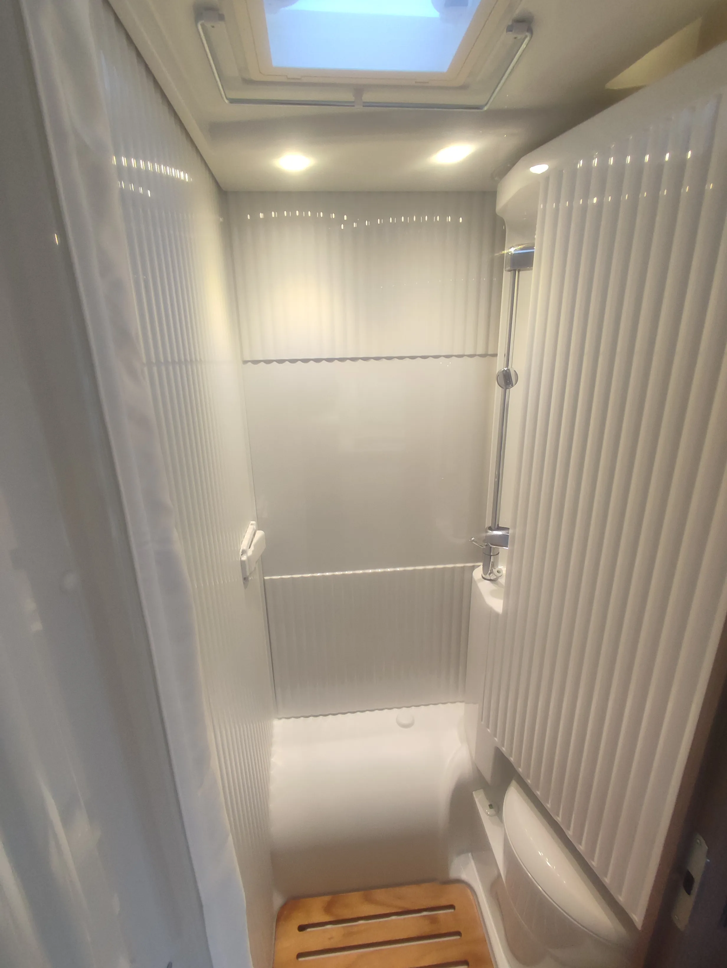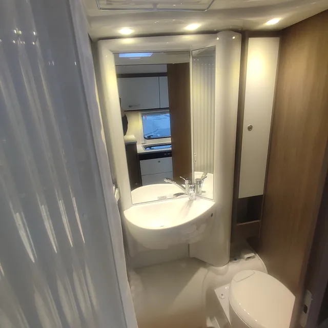 Option usine: Salle d'eau avec parroie pivotante, Pack confort, Chauffage combi 6 diesel Pack pare-Choc avant peint, Store plisse cabine, baies a cadre affleurant, reservoir 100L, Feu de jour, Jante alu 16"Porte entrée avec Moustiquaire, Fermeture centralisée des portes, Multiples prises 12V, USB et 220v,